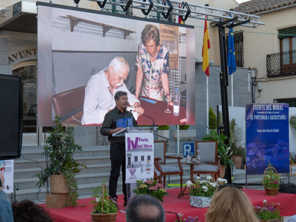 Ya por la tarde, la feria vivió uno de sus momentos más especiales con el homenaje al maestro, alcalde y escritor Don Juan José García Ciudad, cuya figura es recordada con profundo cariño en Calzada. Durante el acto intervinieron familiares, amigos, antiguos alumnos y compañeros, destacando especialmente las palabras de dos de sus nietos, en representación de toda la familia. Hubo también un gesto muy especial hacia Encarnita, su compañera de vida y de vocación, que recibió el aplauso y el afecto de todo el público. La velada continuó con la presentación de su libro ‘Fuente del Moral, La Encomienda de la Orden de Calatrava, el Fontanar y Sacristanía’, en un acto lleno de emociones a flor de piel.