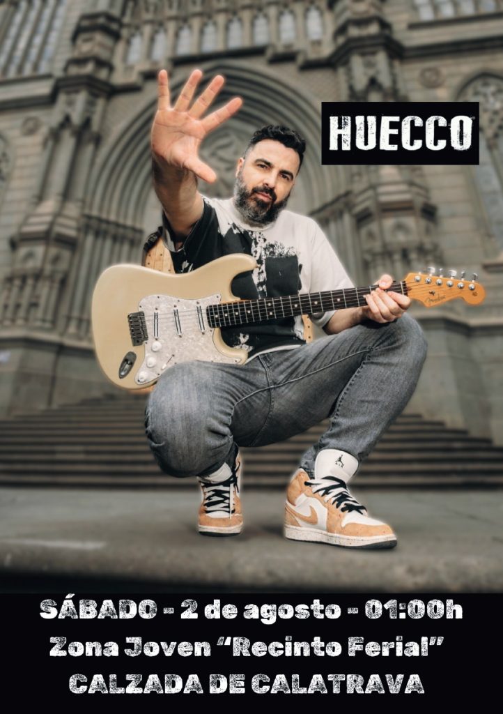 El español Huecco llega a Calzada el sábado 2 de agosto a la una de la madrugada. Iván Sevillano Pérez, conocido como Huecco, es un cantante extremeño, que fue también cantante y compositor de algunos temas de la banda de rap-metal Sugarless, y aterriza en Calzada dispuesto a llenar de energía el ferial calzadeño con su directo.