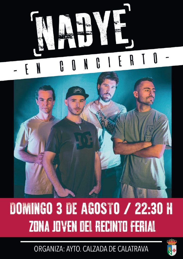 El domingo, 3 de agosto, a las 22:30 horas pondrá el broche de oro al cartel musical la potencia de Nadye Rock, banda de rock madrileña con influencias de rock alternativo e indie, que se caracterizan por un sonido enérgico y potente, con melodías vocales y letras personales. Han lanzado varios álbumes, incluyendo “Intrapolar”, y han actuado en numerosos escenarios y festivales por toda España.