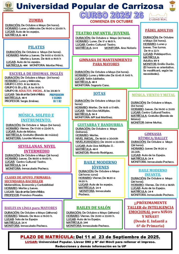 La Universidad Popular de Carrizosa (Ciudad Real) crece en inscripción en la veintena de cursos y talleres que ofrece, que arrancan con novedades, al  haber varias propuestas nuevas.