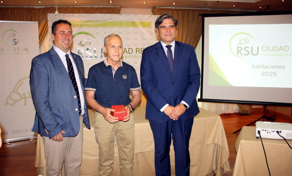 El Consorcio de Residuos Sólidos Urbanos (RSU) de Ciudad Real ha homenajeado a cinco empleados que se jubilan este año, en un acto celebrado en el Hotel Guadiana. Emilio Sánchez Prieto, Fernando Gómez Jiménez, José García García y Miguel Céspedes Belda recibieron un reloj conmemorativo de manos del presidente de RSU Ciudad Real, Carlos Jesús Villajos, y del gerente, José Manuel Labrador, quienes agradecieron los servicios prestados a estos empleados, al tiempo que les deseaban que disfrutasen de sus años de jubilación. Por su parte, Narciso Nieto Gallego, ausente por motivos médicos, recibirá el obsequio próximamente. Con este gesto, el Consorcio reafirma su compromiso con el reconocimiento al esfuerzo, compromiso y trayectoria de quienes han contribuido al servicio público en la provincia durante décadas.
